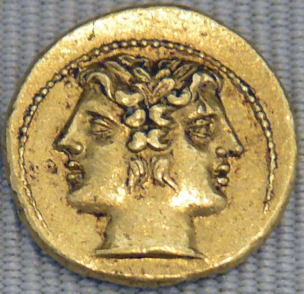 Anno dacum a nagy Julius, kiből köznév lett később, úgy döntött Romulus nyomdokaiba lép. A hagyomány szerint ugyanis Róma első királya alkotta meg az első naptárat és nevezte el a hónapokat és ebben a naptárban nem volt január, de még február sem. Az év március elsejével kezdődött. Oka? Mezőgazdasági szempontból Saturnus uralma alá eső Bak és Vízöntő csillagképek hava érdektelen, holt idő. Mintha nem is létezne. Krisztus előtt hat-hétszáz évvel volt az első naptárreform Rómában, mikor is bekerült az új holdnaptárba Ianuarius és Februarius néven e két hónap, de évkezdeti rangjukra még várniuk kellett néhány évszázadot. Egészen pontosan Kr. e. 45-ig, mikor a Juliánus naptárral hivatalosan is az első nappá nyilvánították Ianuárius első napját, de mint írtam fent, azért még a XVII. századig elhúzódott mire valóban évkezdet lett belőle. A római pragmatizmusra jellemző, hogy januárt egy olyan istenről nevezték el, akit nagyon tiszteltek, de azt nem tudták, hogy miért is. Ki volt a nagy Levin, avagy Ianus. Ianusról mindenki tudja, hogy kétarcú szakállas férfiú. Bár olykor arcszőrzet nélkül tűnik fel, mint itt: