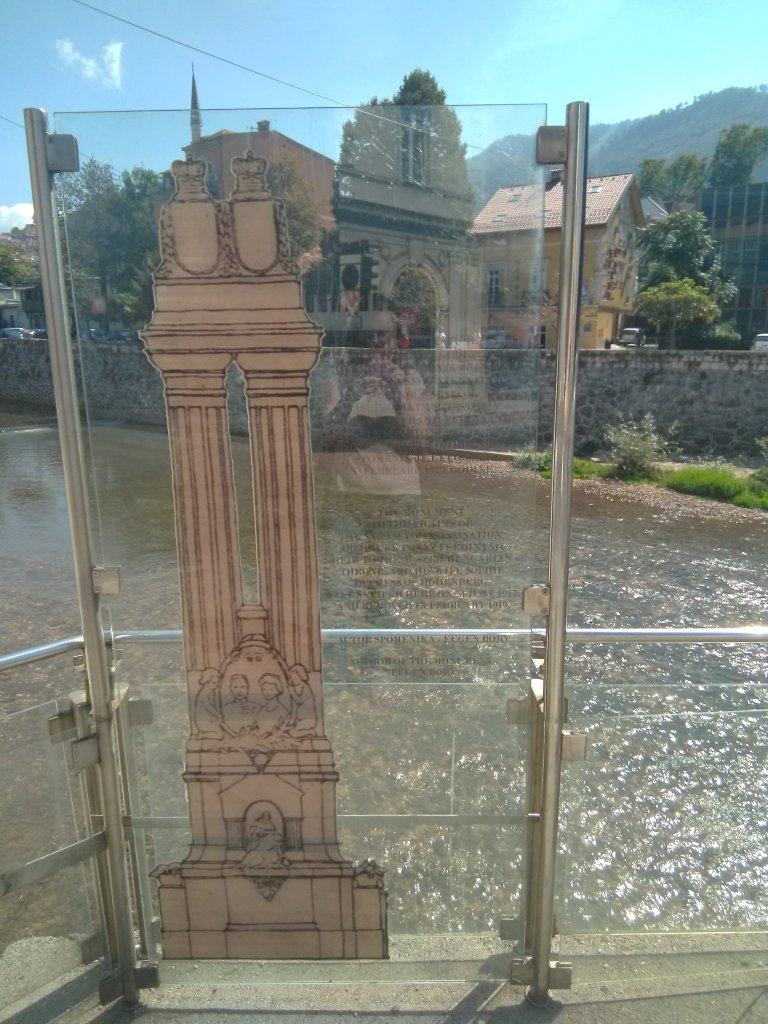 Milyen kis jelentéktelen! Mondd csak bátran, ez volt az első gondolatod. Itt kezdődött el a XX. század 110 évvel ezelőtt. Itt Szarajevóban, ennél az oszmán időkből maradt mindössze 39 méter hosszú az óvárost a valamikori keresztény (latin) negyeddel összekötő hidacskánál. Mely később viselte Gavrilo Princip nevét is, de azon a napon és ma is Latinska ćuprija névre hallgat(ott). Ki hinné, hogy itt ért véget és itt kezdődött minden… A bejegyzésben egy emlékmű rövid történetét találjátok. Érdemes elolvasni. 😉